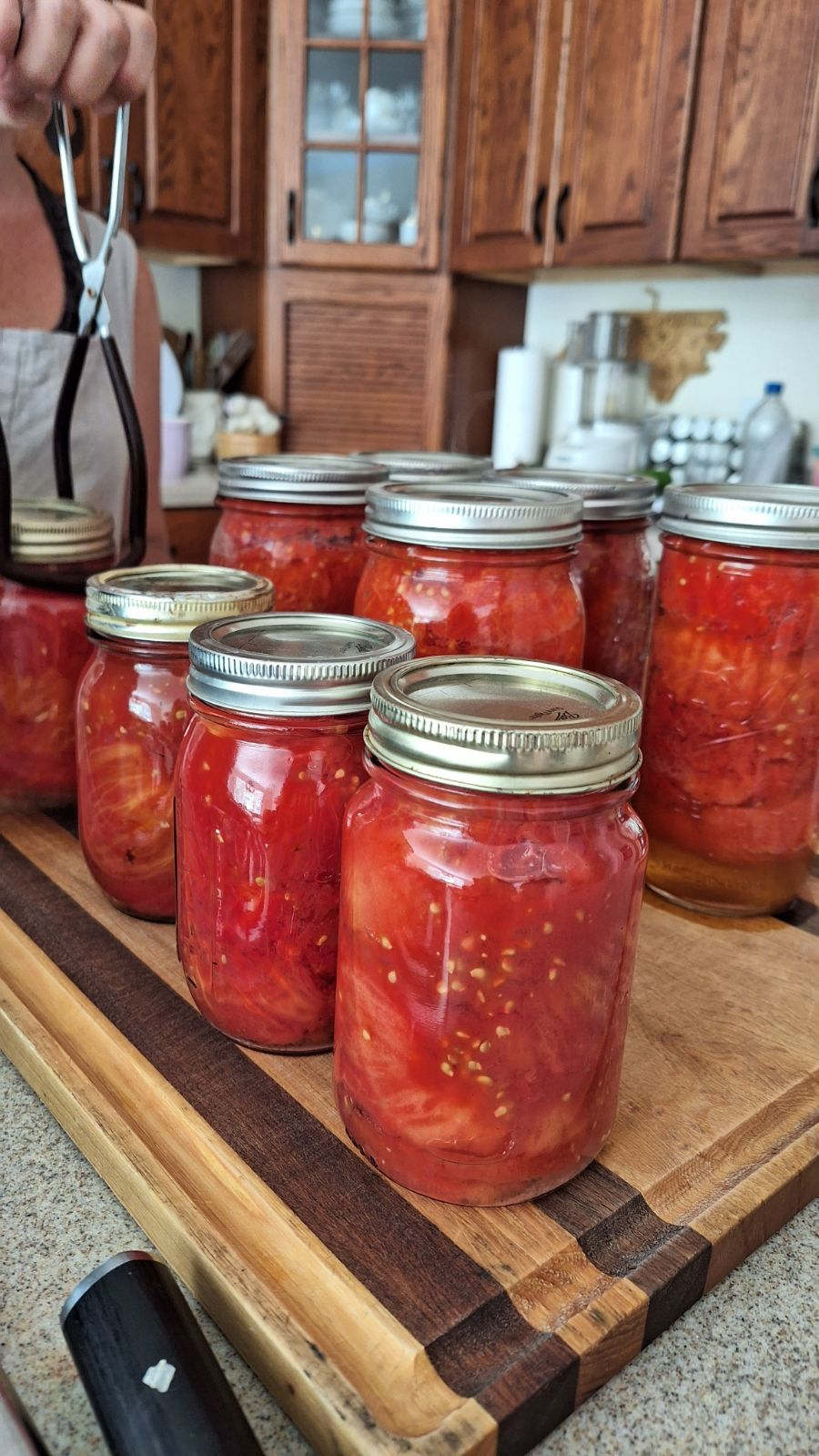 The lady from our farmers market sold us a big box of tomatoes we we have been canning a ton, we got nine jars of tomatoes and three of bruchetta!